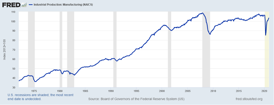 In addition, Manufacturing Industrial Production stalled, growing only 7% from 2000 to 2021 compared to growing over 100% during the 1980 to 2000 time frame: